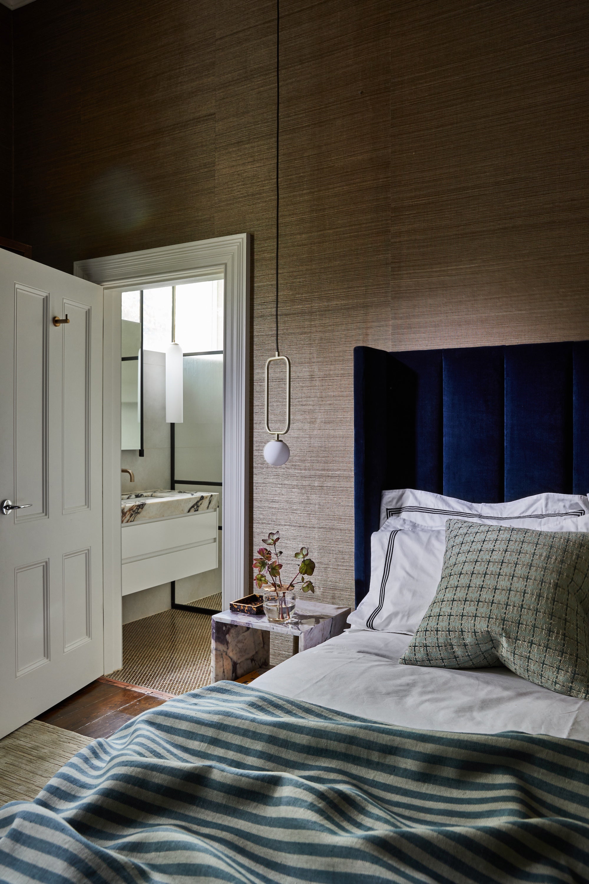 The guest bedroom, in contrast, is all about warmth and retreat. Tonal layers and cocooning textures turn simple, considered selections into a luxurious whole, making the room universally appealing and deeply restful.