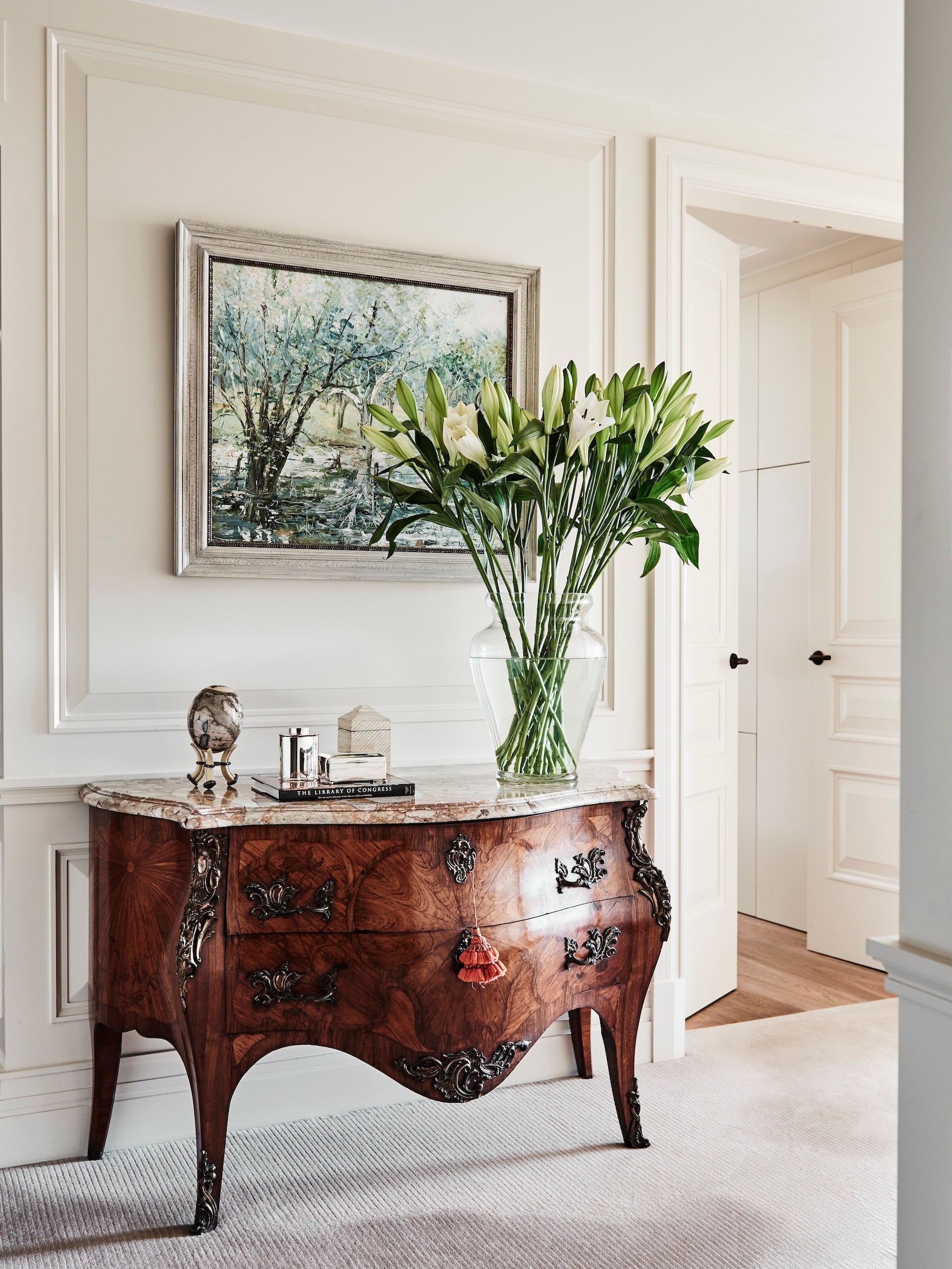 This Domain apartment is the ultimate expression of timeless luxury, where every detail has been considered and refined. Elevated joinery sits seamlessly alongside bespoke oak desks, handmade in Melbourne with a craftsman’s precision. European lighting, antiques and an enviable art collection bring depth, history, and individuality to the interiors.