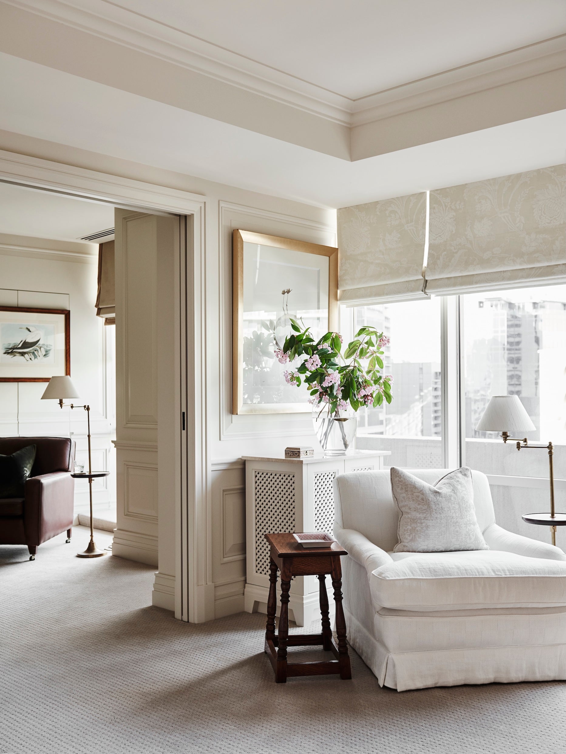 With all-neutral upholstery and soft furnishings, beauty is revealed through texture, subtle pattern, and a gentle hand. Expansive views of the Botanic Gardens and the Shrine of Remembrance frame the apartment, connecting it to both nature and history. Set against this remarkable outlook in the heart of the city, the interiors strike a balance of calm elegance and quiet sophistication, the epitome of enduring beauty.