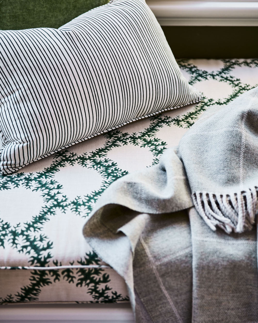 Natural textures and a restrained neutral palette bring warmth and ease to the living spaces, kitchen and corridors, offering an inviting backdrop for family life. In contrast, each bedroom tells its own story through colour, with the hero textile on the bedhead inspiring the tonal palette that flows through walls, furnishings and finishes.