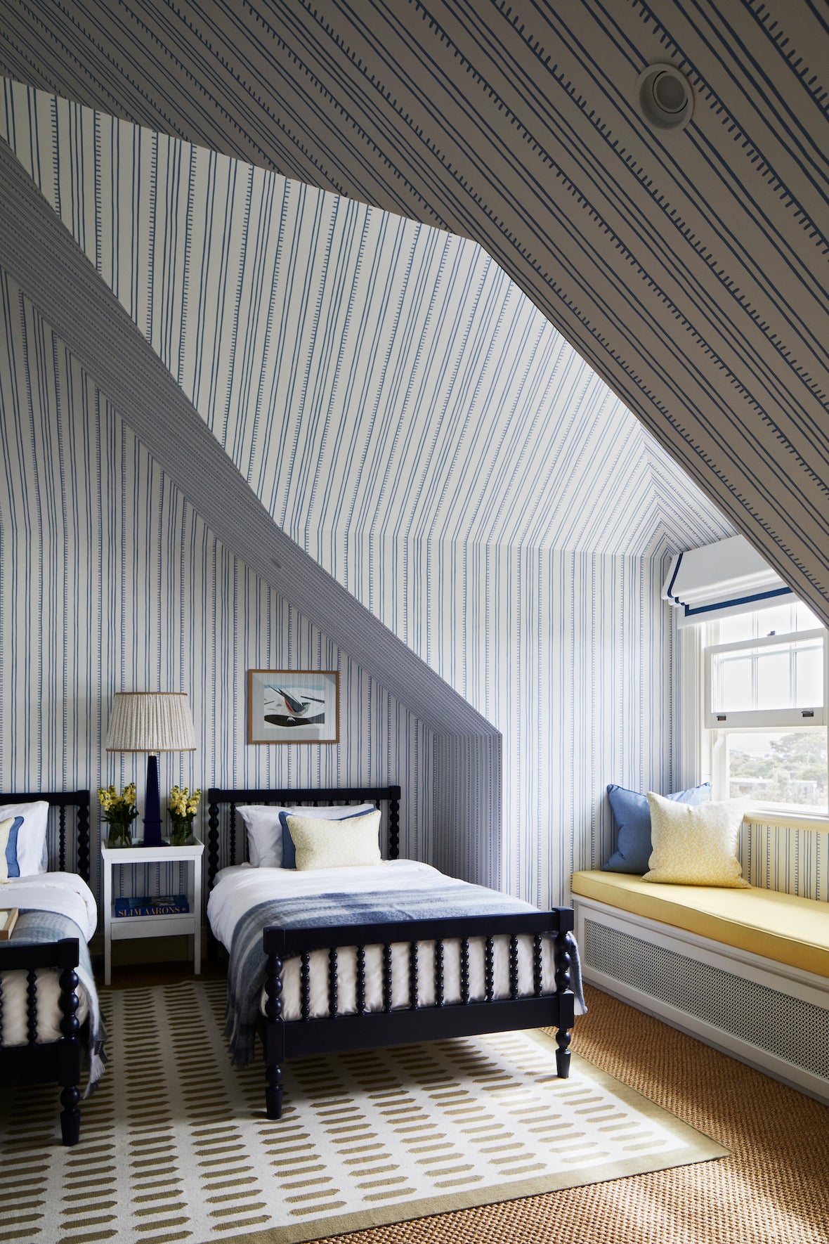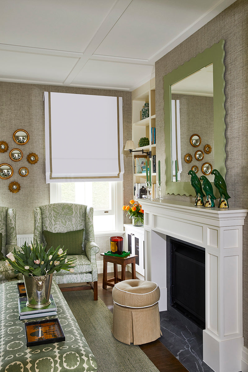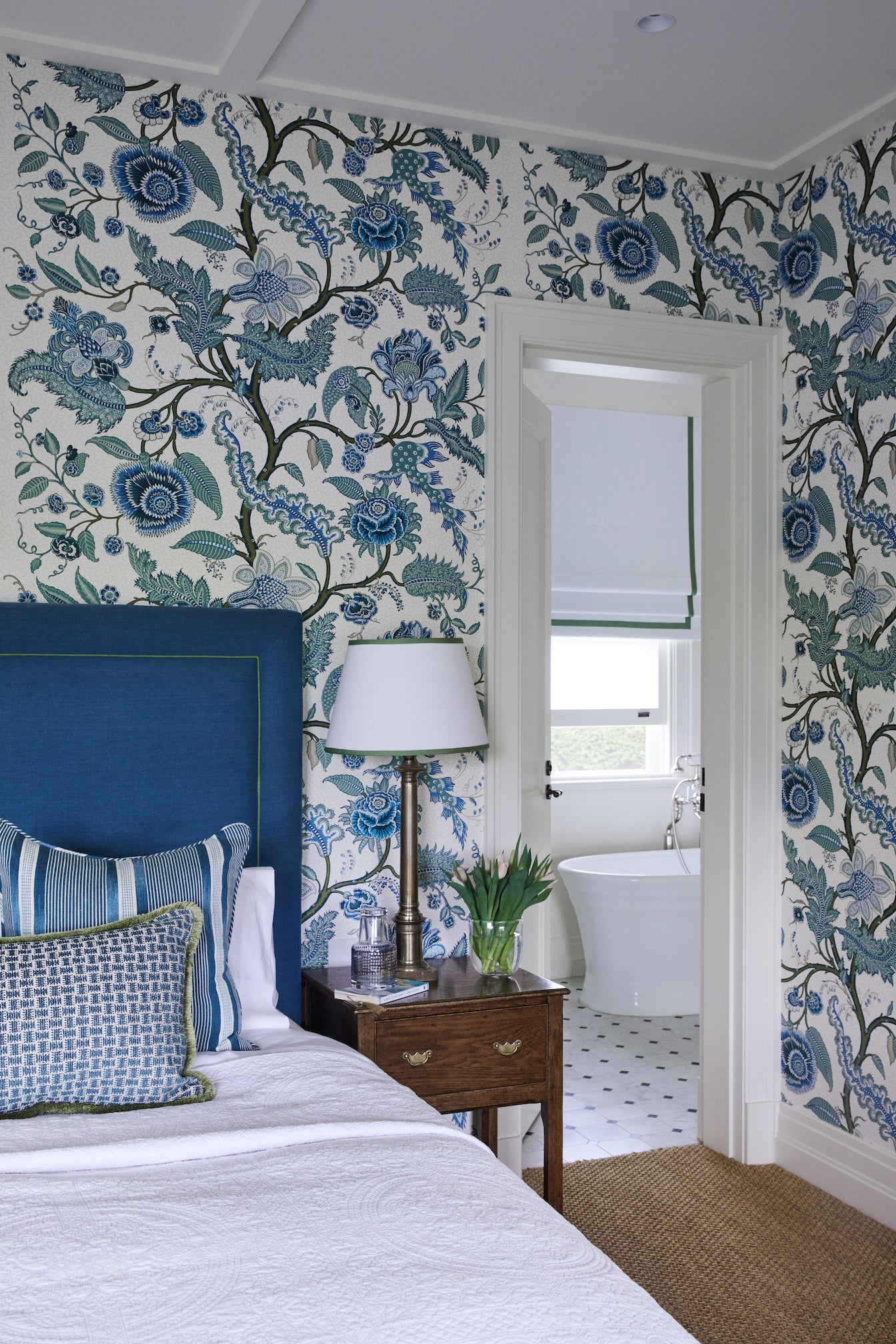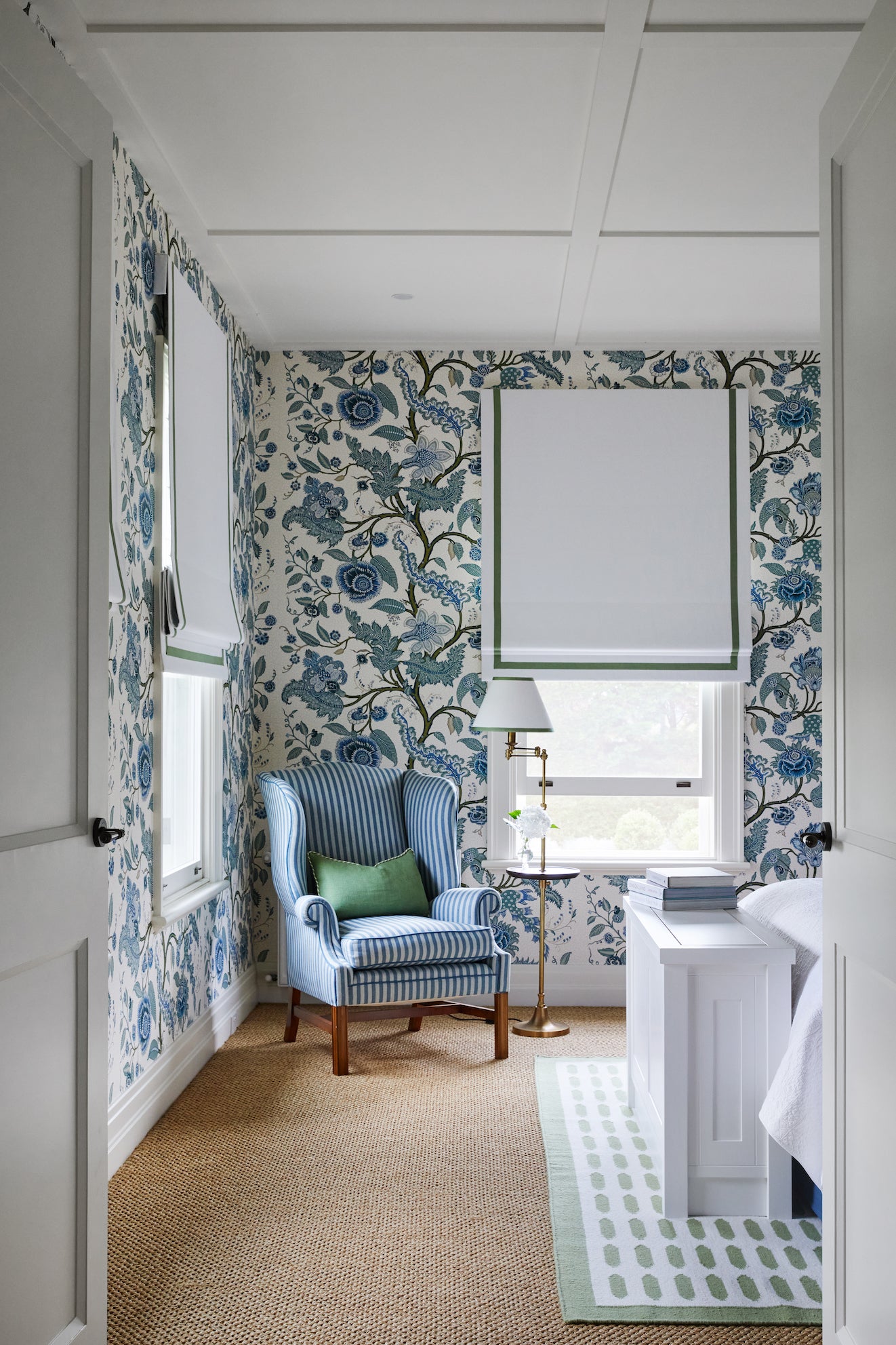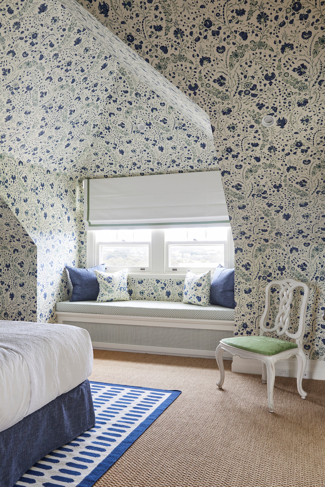 Wallpaper is a defining feature of the home. Beginning with the pattern on the walls, we layered plains and prints of varying scale and structure from fine English and international textiles houses.